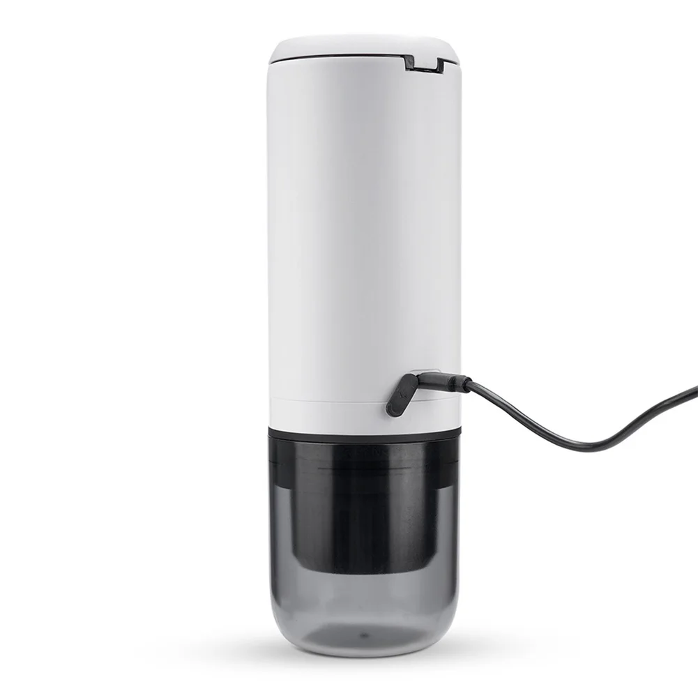 Feature: 1.Versatile Compatibility: This electric portable coffee machine supports both Nespresso capsules and ground coffee, offering dual compatibility for your convenience. 2.Rich Espresso Extraction: With a stable 17BAR high-pressure system, this portable italian espresso machine extracts rich coffee oils, delivering an authentic espresso flavor. 3.Dual Temperature Options: Enjoy your coffee hot or cold, as the capsule powder travel coffee maker provides versatile drink options without built-in heating. 4.Extended Battery Life: Equipped with a large-capacity battery, this wireless electric portable espresso coffee machine offers extended use in black or white. 5.Convenient Charging: Featuring a USB-C charging port, recharging your espresso coffee maker is quick and effortless. Specification: Origin: Mainland China Note: This product does not have a heating function. You need to add hot water to make hot coffee. Parameters: Material: Food grade plastic + 304 stainless steel + ABS Input voltage/power: 5V/1.5A Rated working voltage/power: 12V/0.8A Rated power: 10W Battery rated capacity: 2600mAh 9.62Wh Charging time: about 60 minutes Pressure: 17 BAR Product size: about 228.00x75.00x75.00mm Product size: 8.98x2.95x2.95inch
