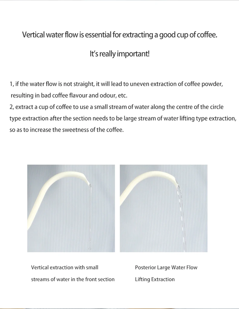1, if the water flow is not straight, it will lead to uneven extraction of coffee powder, which leads to bad coffee flavour, there are mixed flavours and so on.