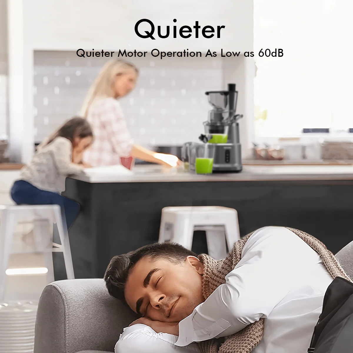 【Efficient Dual Feed Chute】Juicing is effortless with SIFENE's vertical cold press juicer. Its large 83mm fruit chute and 32mm vegetable chute allow you to juice without pre-chopping, saving you prep time. The safe rotary design also adds an extra layer of safety for children.